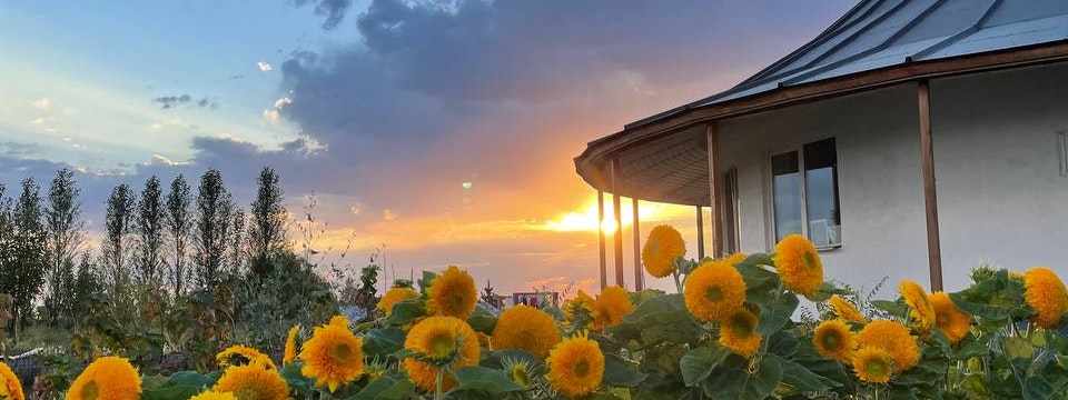One of the visitors to the farm, an eco-activist Jamilya, shared her experience: “I organized a trip to Tayir’s farm for my son’s school class. During the tour led by Tayir’s family, we learned about zero-waste farming and mulching in a fun, hands-on way, made crafts, and fed the goats. Madina (Tayir’s wife) makes delicious cheese from goat’s milk, which we enjoyed with a wonderful vegetarian pilaf cooked over the campfire. We spent the whole day outdoors, breathing fresh air and enjoying nature together—children, parents, and teachers alike.” An interesting fact that Jamilya remembers from the farm tour is that “it is very windy where the house is located, thus trees like pines and poplars are planted around the perimeter, to shield the fruit trees that are located closer to the center of the landplot. Otherwise the fruit trees don’t take root. The pines and poplars create a microclimate needed for the fruit trees to survive.” Jamilya was inspired to see how Tayir’s family lives self-sufficiently on their own land and runs their farm: “Their way of life motivated me to embrace a similar approach, and we also became good friends and stayed connected.”